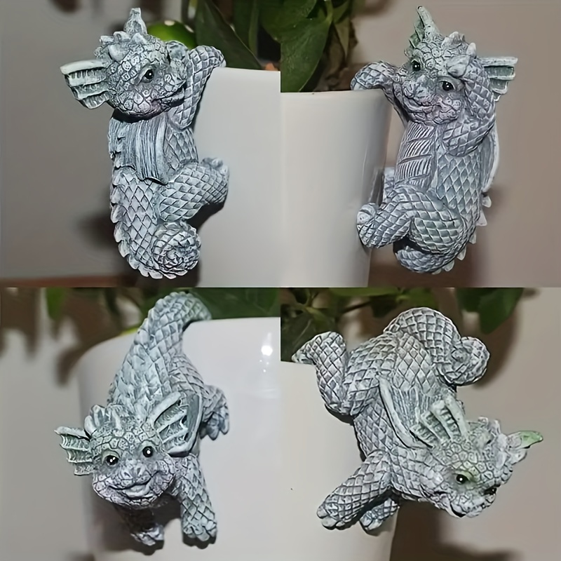 Home > 4pcs Planter Pot Hanger Miniatures, Fairy Garden Flower Pot Dragon Resin Statues, 3D Craft Climbing Decoration For Home Office Desktop Ornaments