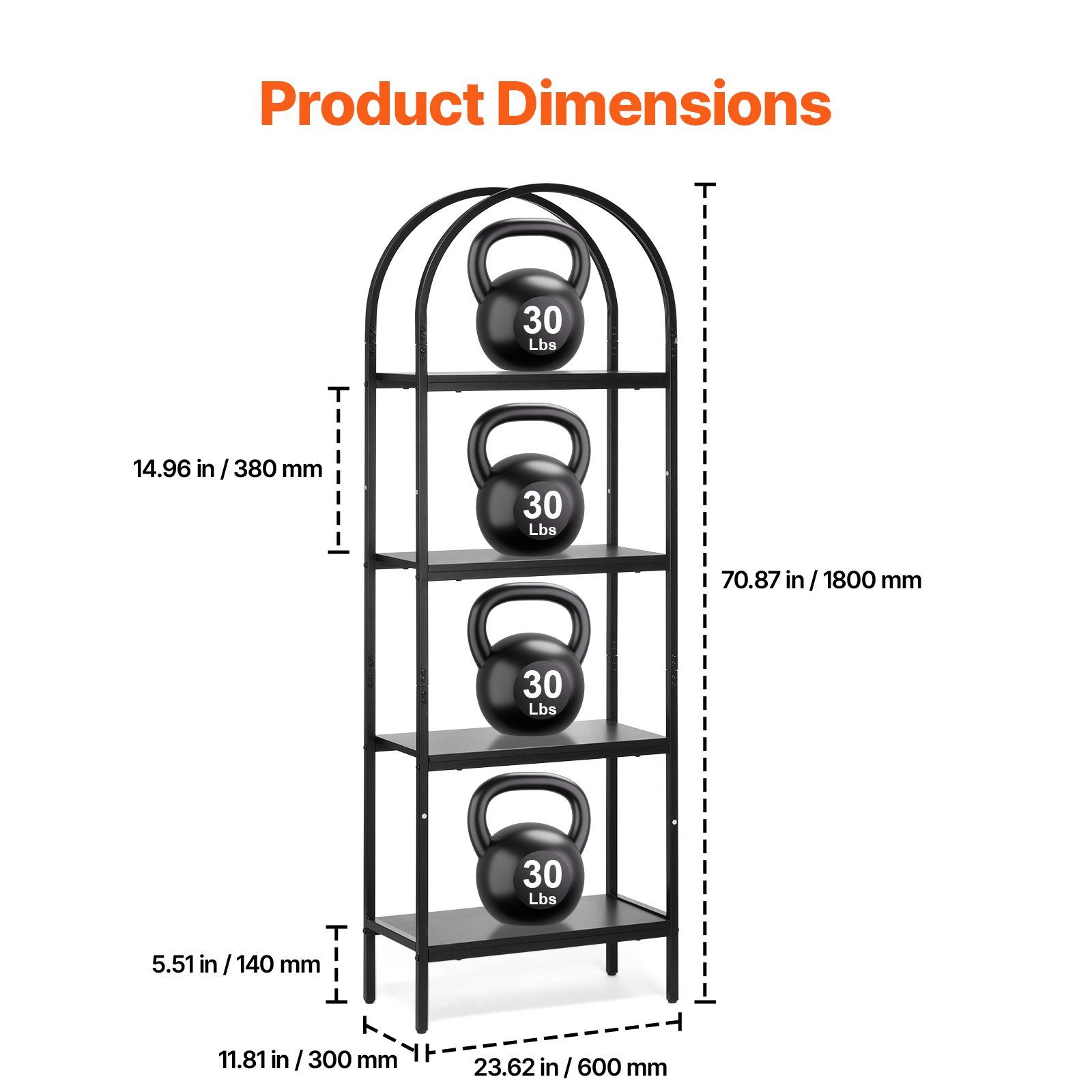 Home > VEVOR Metal Bookshelf, 4-Tier Arched Industrial Bookshelf, Small Rustic Vintage Storage Bookcase with Open Shelves
