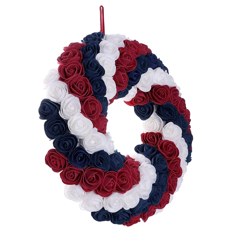 Home > Independence Day Wreath Artificial Blue White Red Flower Hanging Garland for 4th of July Memorial Day Door Decoration