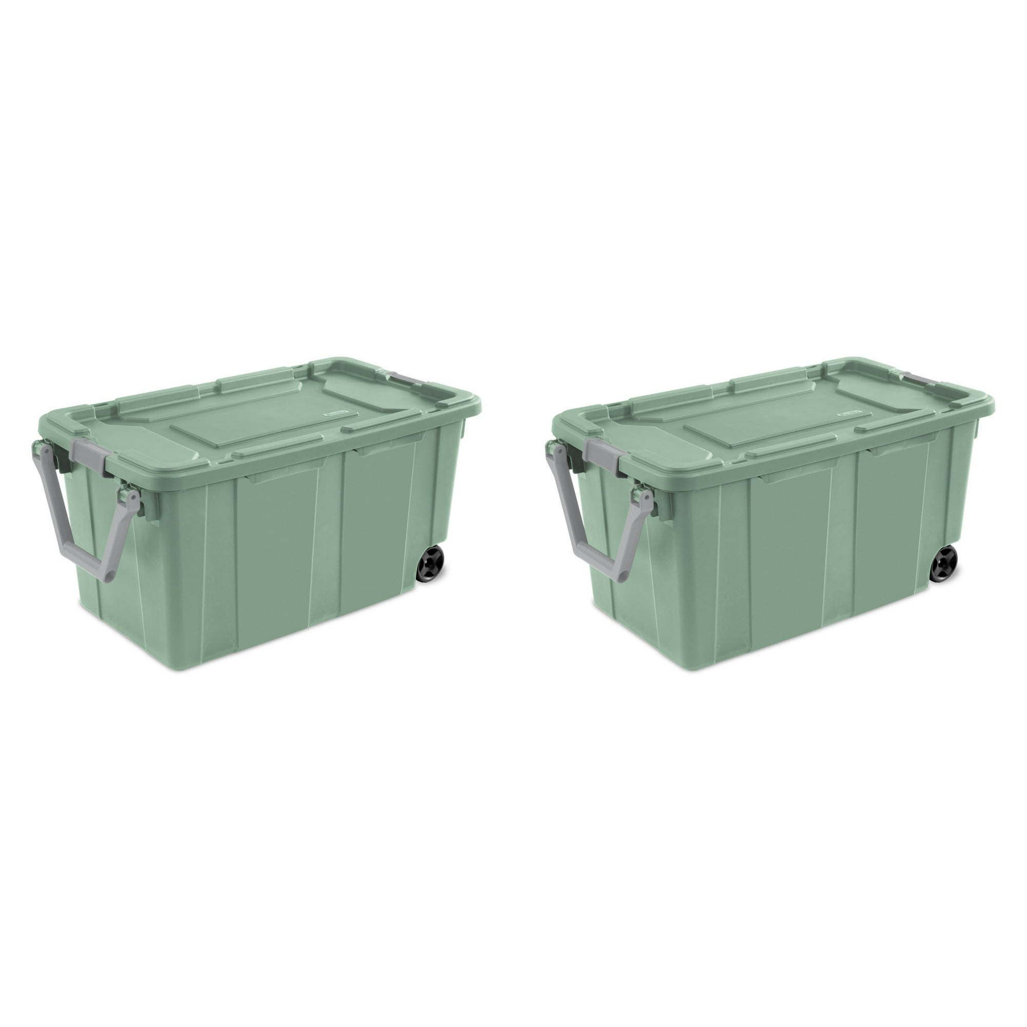 Extra Large Storage Bin, 40 Gallon Wheeled Plastic Storage Container with Handle, Green, Pack of 2